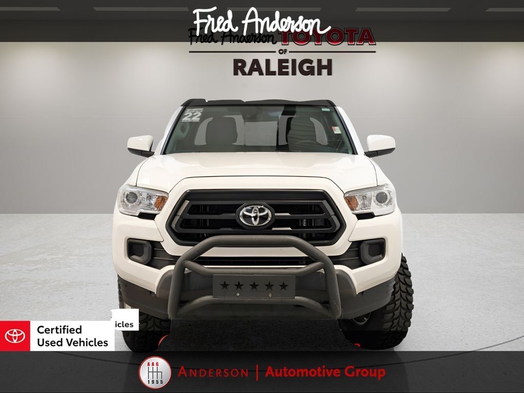 CARFAX One-Owner. Priced below KBB Fair Purchase Price! *Full Family Plan* INCLUDES OIL CHANGES FOR LIFE!, Still Under Factory Powertrain Warranty!!, Only One Prior Owner!!, Bought new here at Fred Anderson Toyota, Local Trade, Star Safety System with Active Breaking Technologies, Keyless Entry, Trailer Hitch, We will buy your car and pay top dollar for it, even if you don't buy ours!!, USB Port, 4WD, ABS brakes, Active Cruise Control, Electronic Stability Control, Illuminated entry, Low tire pressure warning, Remote Keyless Entry, SR Convenience Package, Traction control. Odometer is 10770 miles below market average! Check out all these great options SR Convenience Package (Remote Keyless Entry), Toyota Gold Certified Certified, 4WD, ABS brakes, Active Cruise Control, Electronic Stability Control, Illuminated entry, Low tire pressure warning, Traction control, 6 Speakers, Air Conditioning, AM/FM radio: SiriusXM, AM/FM Stereo, Anti-whiplash front head restraints, Apple CarPlay/Android Auto, Auto High-beam Headlights, Axle Ratio: 4.30, Brake assist, Bumpers: body-color, Driver door bin, Dual front impact airbags, Dual front side impact airbags, Emergency communication system: Safety Connect with 1-year trial, Exterior Parking Camera Rear, Fabric Seat Trim (FB), Front anti-roll bar, Front Bucket Seats, Front Center Armrest, Front reading lights, Front Seats, Front wheel independent suspension, Knee airbag, Occupant sensing airbag, Outside temperature display, Overhead airbag, Overhead console, Passenger cancellable airbag, Passenger door bin, Power door mirrors, Power steering, Power windows, Rear step bumper, Speed control, Speed-sensing steering, Steering wheel mounted audio controls, Tachometer, Telescoping steering wheel, Tilt steering wheel, Variably intermittent wipers, and Wheels: 16" x 7J Style Steel DiscStop by and test drive today. Let us show you how affordable we can make it. Remember, we always give you more for your trade and we will buy your vehicle even if you don't buy one from us. See online @ www.FredAndersonToyota.com or see in person @ Fred Anderson Toyota 9101 Glenwood Ave. Raleigh NC, 27617. 2022 Toyota Certified. Tacoma SR 4WD White 6-Speed Automatic