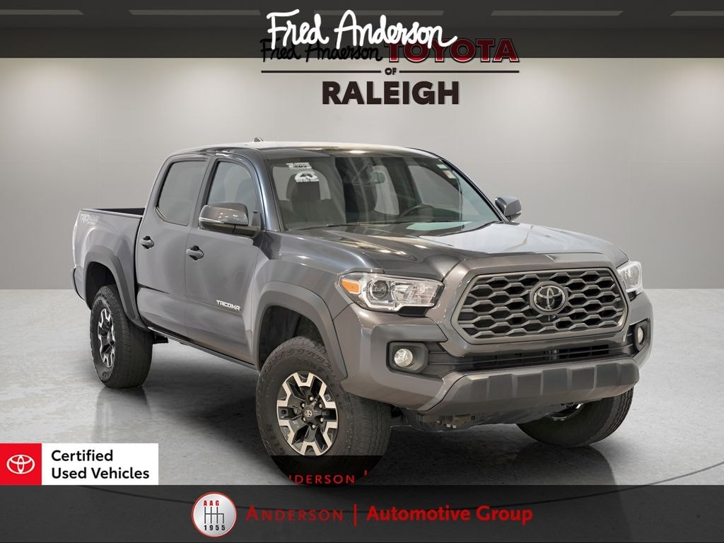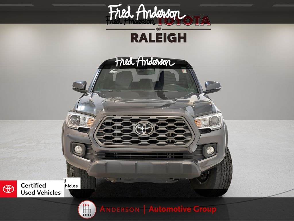 CARFAX One-Owner. Clean CARFAX. *Full Family Plan* INCLUDES OIL CHANGES FOR LIFE!, Still Under Factory Powertrain Warranty!!, Only One Owner and Accident Free Carfax!!, Alloy wheels / Premium Wheels, Bluetooth, Hands-Free, Star Safety System with Active Breaking Technologies, Keyless Entry, Keyless Start, Backup Camera, Trailer Hitch, We will buy your car and pay top dollar for it, even if you don't buy ours!!, USB Port, 4WD, 120V/400W Deck Mounted AC Power, ABS brakes, Alloy wheels, Black Overfenders, Electronic Stability Control, Engine Immobilizer, Front dual zone A/C, Heated door mirrors, Illuminated entry, Low tire pressure warning, Power Sliding Rear Window w/Privacy Glass, Remote keyless entry, Traction control, TRD Off Road Package. Check out all these great options TRD Off Road Package (120V/400W Deck Mounted AC Power, Black Overfenders, Engine Immobilizer, and Power Sliding Rear Window w/Privacy Glass), Toyota Gold Certified Certified, 4WD, ABS brakes, Alloy wheels, Electronic Stability Control, Front dual zone A/C, Heated door mirrors, Illuminated entry, Low tire pressure warning, Remote keyless entry, Traction control, 6 Speakers, Air Conditioning, AM/FM radio: SiriusXM, Anti-whiplash front head restraints, Apple CarPlay/Android Auto, Auto High-beam Headlights, Auto-dimming Rear-View mirror, Auto-Dimming Rearview Mirror w/HomeLink, Automatic temperature control, Brake assist, Bumpers: body-color, Driver door bin, Dual front impact airbags, Dual front side impact airbags, Emergency communication system: Safety Connect (1-year trial), Exterior Parking Camera Rear, Fabric Seat Trim, Front anti-roll bar, Front Bucket Seats, Front Center Armrest, Front fog lights, Front reading lights, Front Seats, Front wheel independent suspension, Garage door transmitter: HomeLink, Knee airbag, Leather Shift Knob, Occupant sensing airbag, Outside temperature display, Overhead airbag, Overhead console, Panic alarm, Passenger door bin, Power door mirrors, Power driver seat, Power steering, Power windows, Radio: Audio, Rear step bumper, Security system, Speed control, Speed-sensing steering, Split folding rear seat, Steering wheel mounted audio controls, Tachometer, Telescoping steering wheel, Tilt steering wheel, Trip computer, Turn signal indicator mirrors, Variably intermittent wipers, and Wheels: 16" Machined Contrast AlloyStop by and test drive today. Let us show you how affordable we can make it. Remember, we always give you more for your trade and we will buy your vehicle even if you don't buy one from us. See online @ www.FredAndersonToyota.com or see in person @ Fred Anderson Toyota 9101 Glenwood Ave. Raleigh NC, 27617. 2023 Toyota Certified. Tacoma TRD Off-Road V6 4WD Magnetic Gray Metallic 6-Speed Automatic
