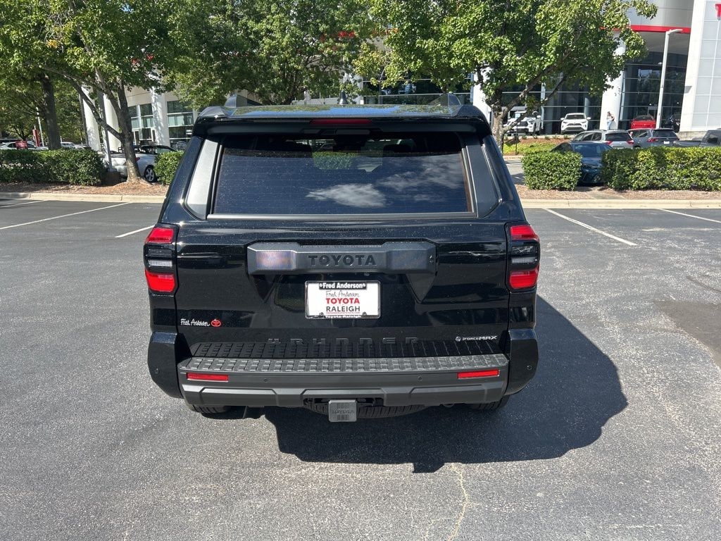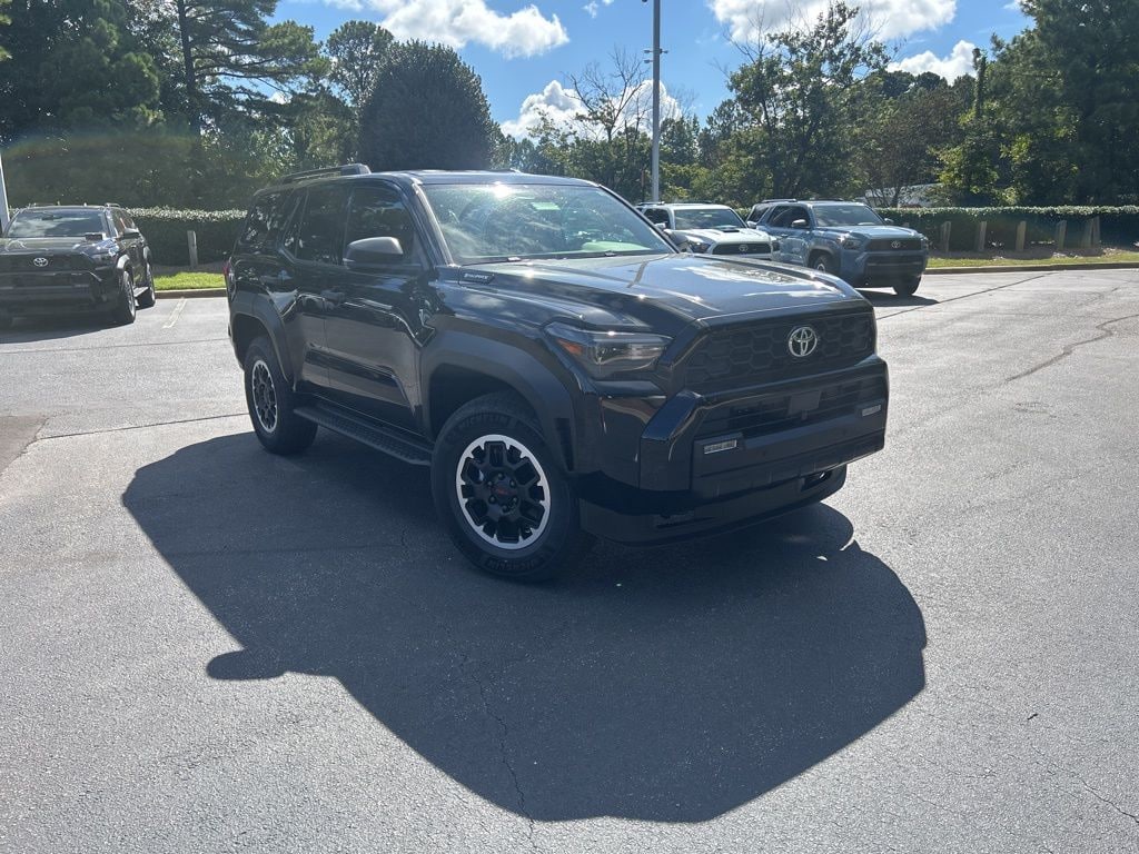- Black honeycomb-style grille, mirror caps, door handles, and overfenders color-keyed rear spoiler black 'TRD OFF ROAD' and '4RUNNER' badges
