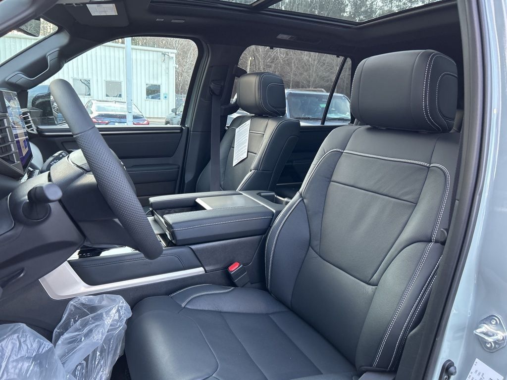 - Leather-trimmed 60/40 split, sliding, power-reclining, fold-down third-row seats with adjustable headrests