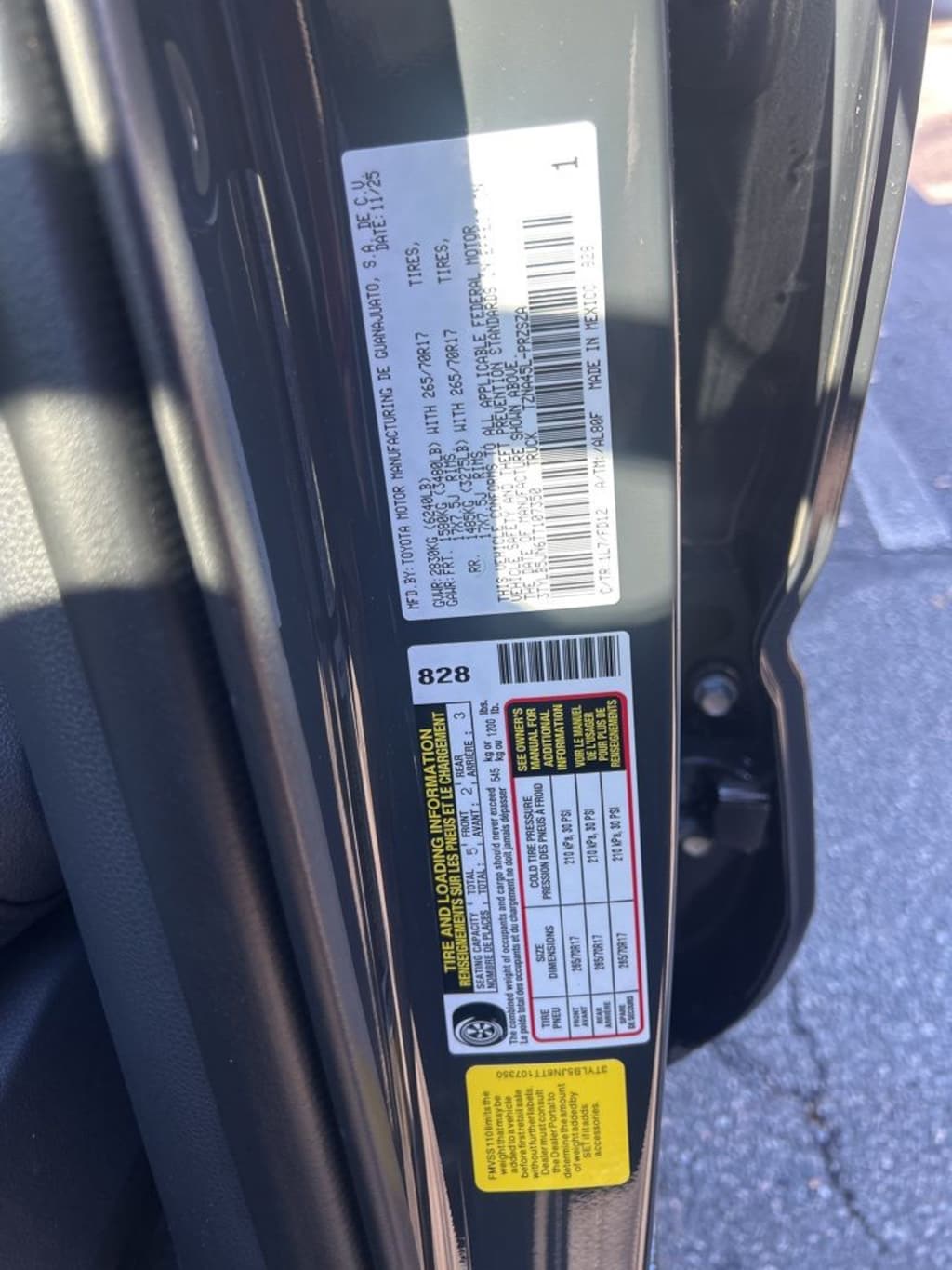 Check out all these great options TRD Off Road Package, 4WD, 6 Speakers, Active Cruise Control, AM/FM radio: SiriusXM, Auto High-beam Headlights, Bed Step, Black Chrome Exhaust Tip, Exterior Parking Camera Rear, Front fog lights, Fully automatic headlights, Panic alarm, Radio: 8" Toyota Audio Multimedia, Spray-on Bed Liner, Suspension Kit with 2.5" Lift, 18" Wheels, 3.583 Axle Ratio, 4-Wheel Disc Brakes, ABS brakes, Air Conditioning, Alloy wheels, Anti-whiplash front head restraints, Apple CarPlay/Android Auto, Auto-dimming Rear-View mirror, Automatic temperature control, Brake assist, Bumpers: body-color, Driver door bin, Driver vanity mirror, Dual front impact airbags, Dual front side impact airbags, Electronic Stability Control, Emergency communication system: Safety Connect (up to 10-year trial subscription), Fabric Seat Trim, Four wheel independent suspension, Front anti-roll bar, Front Bucket Seats, Front Center Armrest, Front reading lights, Heated door mirrors, Illuminated entry, Knee airbag, Leather Shift Knob, Leather steering wheel, Low tire pressure warning, Occupant sensing airbag, Outside temperature display, Overhead airbag, Overhead console, Passenger door bin, Passenger vanity mirror, Power door mirrors, Power steering, Power windows, Rear step bumper, Rear window defroster, Remote keyless entry, Security system, SofTex Seat Trim, Speed control, Speed-sensing steering, Split folding rear seat, Steering wheel mounted audio controls, Tachometer, Telescoping steering wheel, Tilt steering wheel, Traction control, Trip computer, Turn signal indicator mirrors, and Variably intermittent wipersStop by and test drive today. Let us show you how affordable we can make it. Remember, we always give you more for your trade and we will buy your vehicle even if you don't buy one from us. See online @ www.FredAndersonToyota.com or see in person @ Fred Anderson Toyota 9101 Glenwood Ave. Raleigh NC, 27617. Bluetooth, Hands-Free, Star Safety System with Active Breaking Technologies, We will buy your car and pay top dollar for it, even if you don't buy ours!!, Predator Step, 4WD, 6 Speakers, Active Cruise Control, AM/FM radio: SiriusXM, Auto High-beam Headlights, Bed Step, Black Chrome Exhaust Tip, Exterior Parking Camera Rear, Front fog lights, Fully automatic headlights, Panic alarm, Radio: 8" Toyota Audio Multimedia, Spray-on Bed Liner, Suspension Kit with 2.5" Lift, TRD Off Road Package.