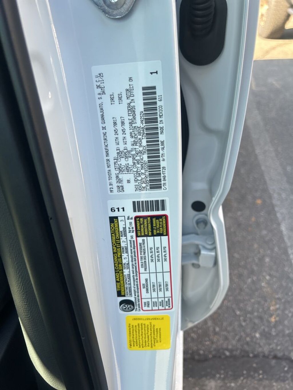 Check out all these great options 6 Speakers, Active Cruise Control, All Weather Floor Liners, AM/FM radio: SiriusXM, Apple CarPlay/Android Auto, Auto High-beam Headlights, Auto-dimming Rear-View mirror, Exterior Parking Camera Rear, Front fog lights, Fully automatic headlights, Heated door mirrors, Mudguards, Power door mirrors, Radio: 8" Toyota Audio Multimedia, Wheels: 17" Styled Alloy, 3.583 Axle Ratio, 4-Wheel Disc Brakes, ABS brakes, Air Conditioning, Anti-whiplash front head restraints, Brake assist, Bumpers: body-color, Driver door bin, Dual front impact airbags, Dual front side impact airbags, Electronic Stability Control, Emergency communication system: Safety Connect (up to 10-year trial subscription), Fabric Seat Trim, Four wheel independent suspension, Front anti-roll bar, Front Bucket Seats, Front Center Armrest, Front reading lights, Illuminated entry, Knee airbag, Low tire pressure warning, Occupant sensing airbag, Outside temperature display, Overhead airbag, Overhead console, Panic alarm, Passenger door bin, Power steering, Power windows, Rear step bumper, Rear window defroster, Remote keyless entry, Speed control, Speed-sensing steering, Split folding rear seat, Steering wheel mounted audio controls, Tachometer, Telescoping steering wheel, Tilt steering wheel, Traction control, Trip computer, and Variably intermittent wipersStop by and test drive today. Let us show you how affordable we can make it. Remember, we always give you more for your trade and we will buy your vehicle even if you don't buy one from us. See online @ www.FredAndersonToyota.com or see in person @ Fred Anderson Toyota 9101 Glenwood Ave. Raleigh NC, 27617. Bluetooth, Hands-Free, Star Safety System with Active Breaking Technologies, We will buy your car and pay top dollar for it, even if you don't buy ours!!, Full-Size Spare Tire, 6 Speakers, Active Cruise Control, All Weather Floor Liners, AM/FM radio: SiriusXM, Apple CarPlay/Android Auto, Auto High-beam Headlights, Auto-dimming Rear-View mirror, Exterior Parking Camera Rear, Front fog lights, Fully automatic headlights, Heated door mirrors, Mudguards, Power door mirrors, Radio: 8" Toyota Audio Multimedia, Wheels: 17" Styled Alloy.