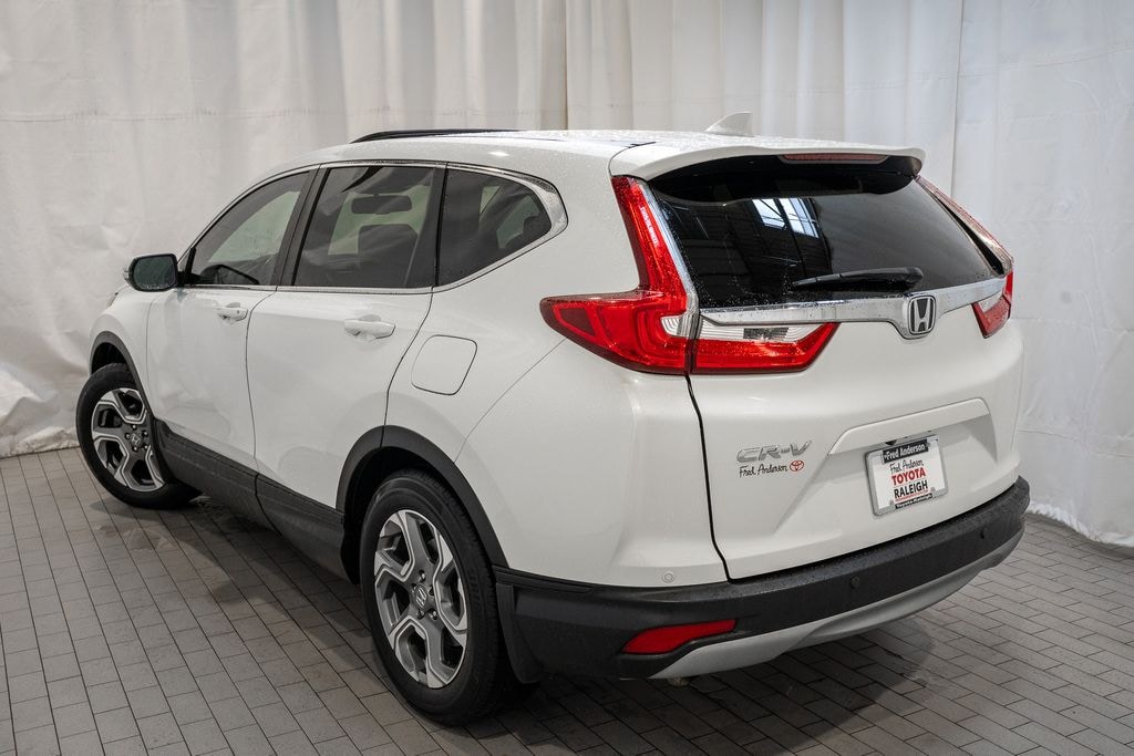 Accident Free Carfax!!, Alloy wheels / Premium Wheels, Bluetooth, Hands-Free, Leather Seats, Star Safety System with Active Breaking Technologies, Keyless Entry, Backup Camera, Sunroof / Panoramic Roof, We will buy your car and pay top dollar for it, even if you don't buy ours!!. Check out all these great options 18" Alloy Wheels, 4-Wheel Disc Brakes, 5.64 Axle Ratio, 8 Speakers, ABS brakes, Air Conditioning, Alloy wheels, AM/FM radio: SiriusXM, Apple CarPlay/Android Auto, Auto High-beam Headlights, Auto-dimming Rear-View mirror, Automatic temperature control, Blind Spot Information (BSI) System warning, Brake assist, Bumpers: body-color, Compass, Delay-off headlights, Driver door bin, Driver vanity mirror, Dual front impact airbags, Dual front side impact airbags, Electronic Stability Control, Exterior Parking Camera Rear, Four wheel independent suspension, Front anti-roll bar, Front Bucket Seats, Front Center Armrest, Front dual zone A/C, Front fog lights, Front reading lights, Fully automatic headlights, Garage door transmitter: HomeLink, Heated door mirrors, Heated Front Bucket Seats, Heated front seats, Illuminated entry, Leather Seat Trim, Leather Shift Knob, Low tire pressure warning, Memory seat, Occupant sensing airbag, Outside temperature display, Overhead airbag, Overhead console, Panic alarm, Passenger door bin, Passenger vanity mirror, Power door mirrors, Power driver seat, Power Liftgate, Power moonroof, Power passenger seat, Power steering, Power windows, Radio data system, Radio: AM/FM/SiriusXM Audio System, Rear anti-roll bar, Rear seat center armrest, Rear window defroster, Rear window wiper, Remote keyless entry, Security system, Speed control, Speed-sensing steering, Speed-Sensitive Wipers, Split folding rear seat, Spoiler, Steering wheel mounted audio controls, Tachometer, Telescoping steering wheel, Tilt steering wheel, Traction control, Trip computer, Turn signal indicator mirrors, and Variably intermittent wipersStop by and test drive today. Let us show you how affordable we can make it. Remember, we always give you more for your trade and we will buy your vehicle even if you don't buy one from us. See online @ www.FredAndersonToyota.com or see in person @ Fred Anderson Toyota 9101 Glenwood Ave. Raleigh NC, 27617. Recent Arrival! 2018 Honda CR-V EX-L FWD Diamond White Pearl CVT