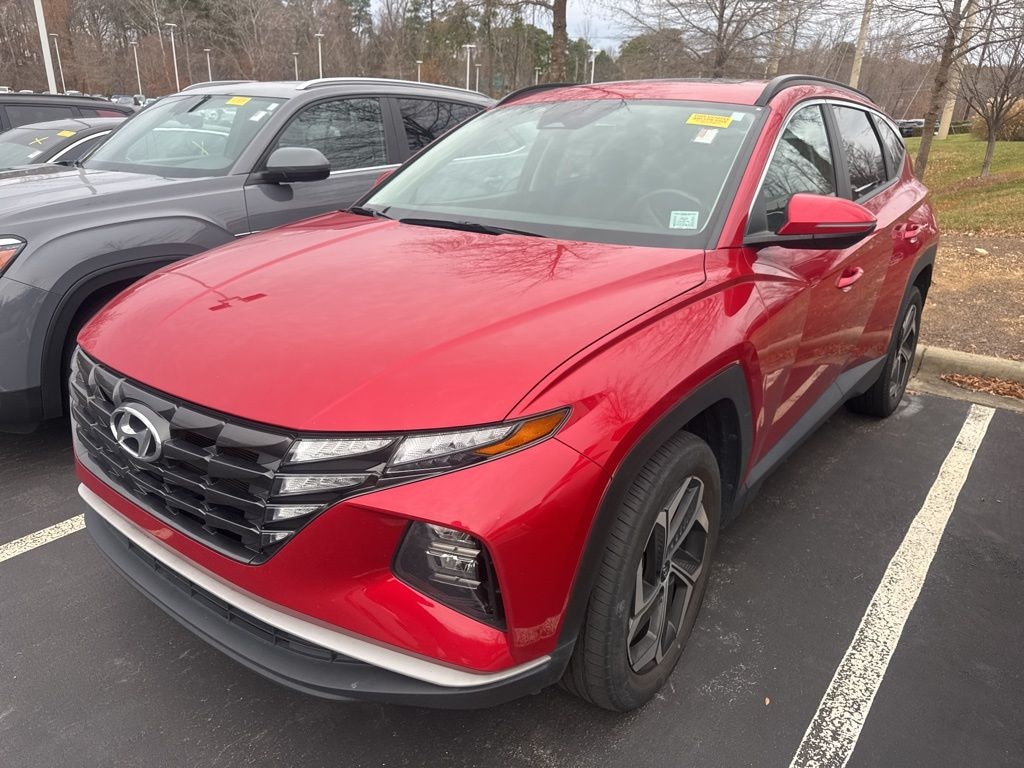Check out all these great options Convenience Package (10.25" Digital Instrument Cluster, Auto-Dimming Interior Mirror w/Homelink, Digital Key, Dual Automatic Temperature Control, Hands-Free Power Liftgate w/Auto-Open, Leather-Wrapped Shift Knob, Leather-Wrapped Steering Wheel, LED Interior Lights (Room, Map), Option Group 02, Power Sunroof, Ultrasonic Rear Occupant Alert, Wheels: 19" x 7.5J" Machine-Face Finish Alloy, and Wireless Phone Charging), 3.648 Axle Ratio, 4-Wheel Disc Brakes, 6 Speakers, ABS brakes, Air Conditioning, Alloy wheels, AM/FM radio: SiriusXM, Apple CarPlay & Android Auto, Auto High-beam Headlights, Brake assist, Bumpers: body-color, Cargo Net, Cargo Tray, Carpeted Floor Mats, Delay-off headlights, Driver door bin, Driver vanity mirror, Dual front impact airbags, Dual front side impact airbags, Electronic Stability Control, Emergency communication system: Blue Link Connected Car Service (3-year complimentary subscription), Four wheel independent suspension, Front anti-roll bar, Front Bucket Seats, Front Center Armrest, Front reading lights, Fully automatic headlights, Heated door mirrors, Heated Front Bucket Seats, Heated front seats, Illuminated entry, Low tire pressure warning, Occupant sensing airbag, Outside temperature display, Overhead airbag, Overhead console, Panic alarm, Passenger door bin, Passenger vanity mirror, Power door mirrors, Power driver seat, Power steering, Power windows, Radio data system, Radio: AM/FM/HD/SiriusXM Audio System, Rear anti-roll bar, Rear seat center armrest, Rear window defroster, Rear window wiper, Remote keyless entry, Roof rack: rails only, Security system, Speed control, Split folding rear seat, Spoiler, Stain & Odor Resistant Cloth Seat Trim, Steering wheel mounted audio controls, Tachometer, Telescoping steering wheel, Tilt steering wheel, Tow Hitch, Traction control, Trip computer, Turn signal indicator mirrors, Variably intermittent wipers, and Wheels: 17" x 7.0J" Alloy *** AVAILABLE AT FRED ANDERSON NISSAN OF RALEIGH. CALL US NOW 919-787-0254*** Hyundai Tucson Calypso Red SEL AWD 8-Speed Automatic with SHIFTRONIC 2.5L I4 DGI DOHC 16V LEV3-ULEV70 187hp