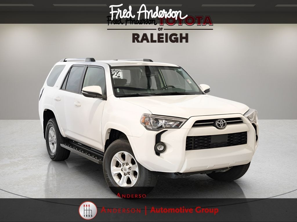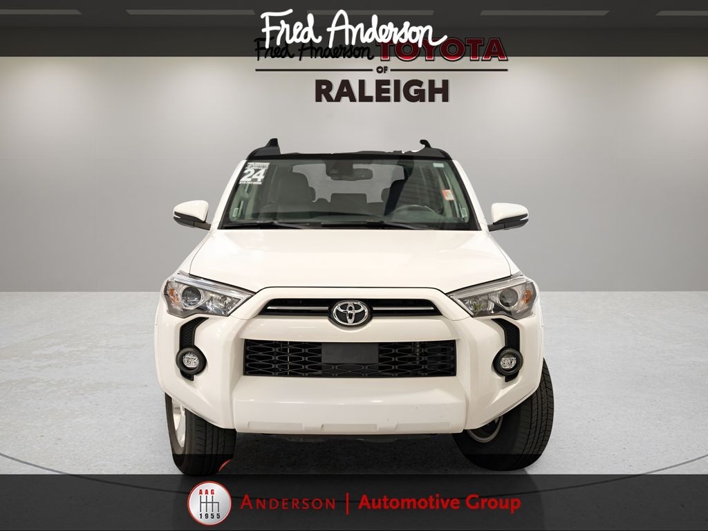 CARFAX One-Owner. Clean CARFAX. *Full Family Plan* INCLUDES OIL CHANGES FOR LIFE!, Still Under Factory Powertrain Warranty!!, Still Under Factory Warranty!!, Only One Owner and Accident Free Carfax!!, Navigation, Alloy wheels / Premium Wheels, Bluetooth, Hands-Free, Leather Seats, Star Safety System with Active Breaking Technologies, Keyless Entry, Keyless Start, Backup Camera, Trailer Hitch, We will buy your car and pay top dollar for it, even if you don't buy ours!!, USB Port, 4WD, Black/Graphite w/Leather Seat Trim, Garage Door Opener, Heated Outside Rear-View Mirrors, SR5 Premium Package. Check out all these great options SR5 Premium Package (Garage Door Opener and Heated Outside Rear-View Mirrors), 4WD, Black/Graphite w/Leather Seat Trim, 17" 6-Spoke Alloy Wheels, 3.727 Axle Ratio, 4-Wheel Disc Brakes, 8 Speakers, ABS brakes, Air Conditioning, Alloy wheels, AM/FM radio: SiriusXM, Anti-whiplash front head restraints, Apple CarPlay/Android Auto, Auto High-beam Headlights, Auto-dimming Rear-View mirror, Brake assist, Bumpers: body-color, Compass, Driver door bin, Driver vanity mirror, Dual front impact airbags, Dual front side impact airbags, Electronic Stability Control, Emergency communication system: Safety Connect (1-year trial), Exterior Parking Camera Rear, Front anti-roll bar, Front Bucket Seats, Front Center Armrest, Front fog lights, Front reading lights, Front wheel independent suspension, Garage door transmitter: HomeLink, Heated door mirrors, Heated Front Bucket Seats, Heated front seats, Heated steering wheel, Illuminated entry, Knee airbag, Leather Shift Knob, Leather steering wheel, Low tire pressure warning, Occupant sensing airbag, Outside temperature display, Overhead airbag, Overhead console, Panic alarm, Passenger door bin, Passenger vanity mirror, Power door mirrors, Power driver seat, Power passenger seat, Power steering, Power windows, Radio: Premium Audio, Rear anti-roll bar, Rear seat center armrest, Rear window defroster, Rear window wiper, Remote keyless entry, Security system, SofTex Seat Trim, Speed control, Speed-sensing steering, Split folding rear seat, Spoiler, Steering wheel mounted audio controls, Tachometer, Telescoping steering wheel, Tilt steering wheel, Traction control, Trip computer, Turn signal indicator mirrors, and Variably intermittent wipersStop by and test drive today. Let us show you how affordable we can make it. Remember, we always give you more for your trade and we will buy your vehicle even if you don't buy one from us. See online @ www.FredAndersonToyota.com or see in person @ Fred Anderson Toyota 9101 Glenwood Ave. Raleigh NC, 27617. 2024 Toyota 4Runner SR5 Premium 4WD Ice Cap 5-Speed with ECT