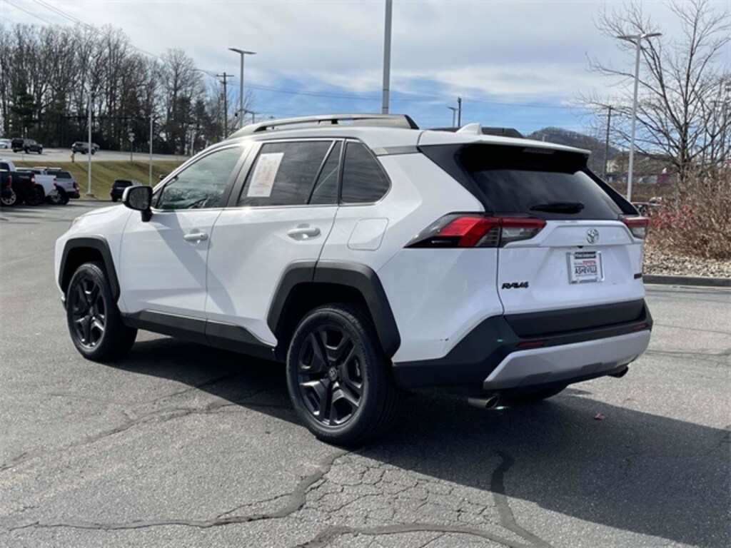 CARFAX One-Owner. Clean CARFAX. 2024 Toyota RAV4 Adventure White 19" Split 5-Spoke Alloy Wheels, 4-Wheel Disc Brakes, 6 Speakers, ABS brakes, Air Conditioning, Alloy wheels, AM/FM radio: SiriusXM, Auto High-beam Headlights, Automatic temperature control, Axle Ratio: 3.177, Brake assist, Bumpers: body-color, Delay-off headlights, Driver door bin, Driver vanity mirror, Dual front impact airbags, Dual front side impact airbags, Electronic Stability Control, Emergency communication system: Safety Connect (10-year trial), Exterior Parking Camera Rear, Four wheel independent suspension, Front anti-roll bar, Front Bucket Seats, Front Center Armrest, Front dual zone A/C, Front fog lights, Front reading lights, Fully automatic headlights, Heated door mirrors, Illuminated entry, Knee airbag, Leather Shift Knob, Leather steering wheel, Low tire pressure warning, Occupant sensing airbag, Outside temperature display, Overhead airbag, Overhead console, Panic alarm, Passenger door bin, Passenger vanity mirror, Power door mirrors, Power driver seat, Power steering, Power windows, Radio data system, Radio: AM/FM/XM Audio System, Rear anti-roll bar, Rear seat center armrest, Rear window defroster, Rear window wiper, Remote keyless entry, Security system, SofTex Seat Trim, Speed control, Speed-sensing steering, Split folding rear seat, Spoiler, Steering wheel mounted audio controls, Tachometer, Telescoping steering wheel, Tilt steering wheel, Traction control, Trip computer, Turn signal indicator mirrors, Variably intermittent wipers.