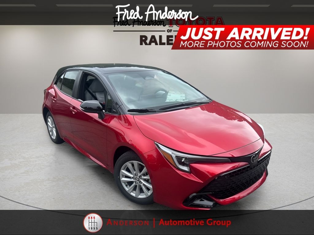 Clean CARFAX. Bluetooth, Hands-Free, We will buy your car and pay top dollar for it, even if you don't buy ours!!, SE Premium Package, All Weather Floor Liner Package (TMS), Blind Spot Monitor w/Rear Cross-Traffic Alert, Color-Keyed Heated Power Outside Mirrors, Paint Protection Film (TMS), Qi-Compatible Wireless Smartphone Charger, SE Package. Odometer is 14977 miles below market average! Check out all these great options All Weather Floor Liner Package (TMS), SE Package (Blind Spot Monitor w/Rear Cross-Traffic Alert, Color-Keyed Heated Power Outside Mirrors, and Qi-Compatible Wireless Smartphone Charger), Paint Protection Film (TMS), 16" Alloy Wheels, 4-Wheel Disc Brakes, 6 Speakers, ABS brakes, Air Conditioning, Alloy wheels, AM/FM radio: SiriusXM, Auto High-beam Headlights, Automatic temperature control, Brake assist, Bumpers: body-color, Compass, Delay-off headlights, Driver door bin, Driver vanity mirror, Dual front impact airbags, Dual front side impact airbags, Electronic Stability Control, Emergency communication system: Safety Connect (up to 10-year trial subscription), Exterior Parking Camera Rear, Fabric Seat Trim, Four wheel independent suspension, Front anti-roll bar, Front Bucket Seats, Front Center Armrest, Front reading lights, Heated door mirrors, Illuminated entry, Knee airbag, Leather Shift Knob, Leather steering wheel, Low tire pressure warning, Occupant sensing airbag, Outside temperature display, Overhead airbag, Overhead console, Panic alarm, Passenger door bin, Passenger vanity mirror, Power door mirrors, Power steering, Power windows, Radio data system, Radio: 8" Toyota Audio Multimedia, Rear anti-roll bar, Rear seat center armrest, Rear side impact airbag, Rear window defroster, Rear window wiper, Remote keyless entry, Security system, Speed control, Speed-sensing steering, Split folding rear seat, Spoiler, Sport Front Seats, Steering wheel mounted audio controls, Tachometer, Telescoping steering wheel, Tilt steering wheel, Traction control, Trip computer, Turn signal indicator mirrors, and Variably intermittent wipersStop by and test drive today. Let us show you how affordable we can make it. Remember, we always give you more for your trade and we will buy your vehicle even if you don't buy one from us. See online @ www.FredAndersonToyota.com or see in person @ Fred Anderson Toyota 9101 Glenwood Ave. Raleigh NC, 27617. Recent Arrival! 2025 Toyota Corolla Hatchback FWD Finish Line Red/Midnight Black Metallic CVT